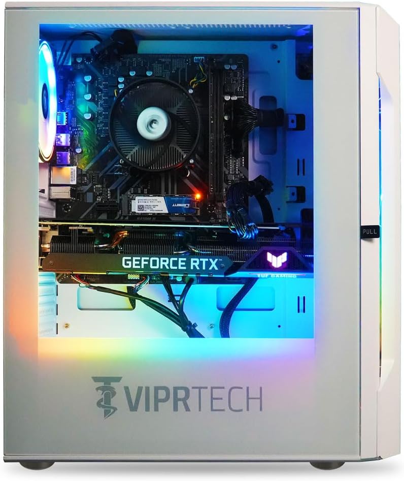 ViprTech Rebel 4.0 Gaming PC – AMD Ryzen 7 (16-LCore 4.1Ghz), RTX 4060 8GB, 32GB DDR4 3200 RAM, 1TB NVMe SSD, 600W Gold PSU, VR-Ready, Streaming, WiFi, RGB, Win 11 Pro, White Desktop Computer